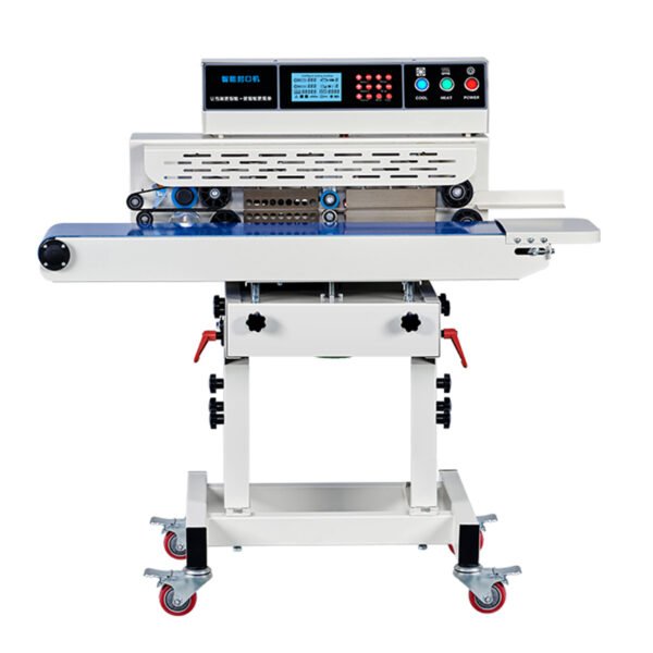 Smart TEPPS 210AP continuous band sealer with date printing for plastic and foil materials. Enhance your packaging process with precise, adjustable controls from Tepps.