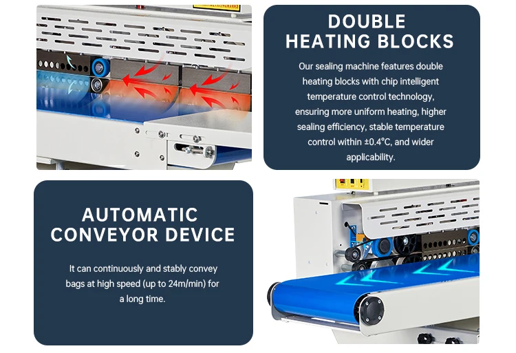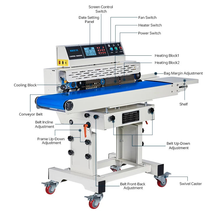 Seal Bag Type | This machine is appropriate for heat-sealing plastic bags that require sealing. Particularly suitable for aluminum foil bags, M-fold bags, Stand up pouch, PE bags, thick bags and products requiring high sealing speed. | ||||