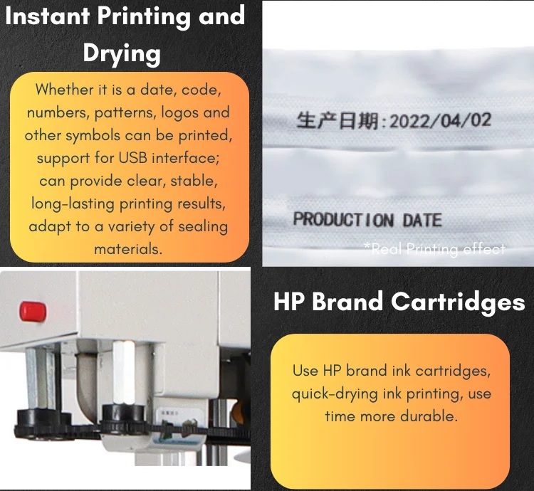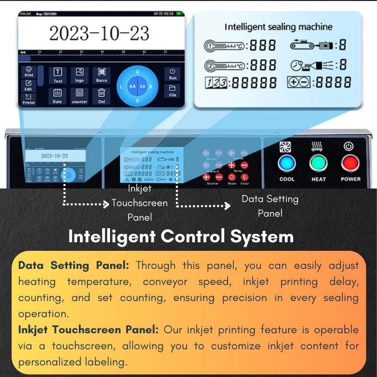 Sealing speed | 0-15m/min | Inkjet Print Width | Max.12.7mm | ||