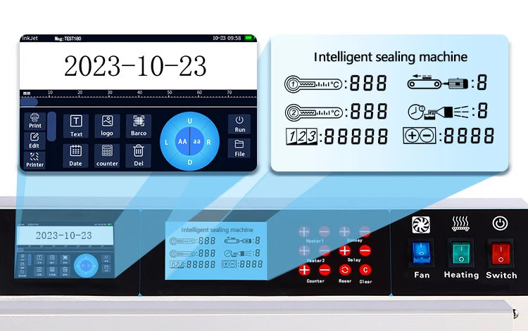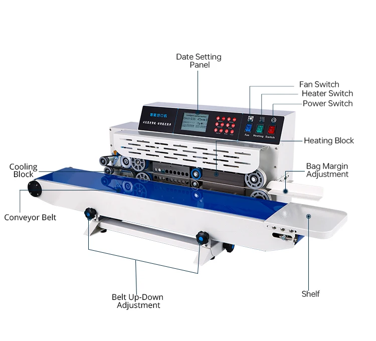 Stainless steel body??Ink Cartridge Printing??Roller printing??Ribbon coding??Seal widening??Bag margin lengthening