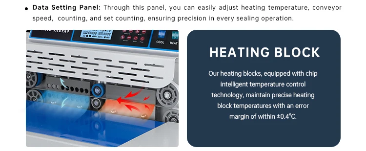Upgrade to the 280T high-quality desktop sealer: Smart chip control with 720W heating, 10mm customizable seal width, 0-22m/min speed, and 24V/80W motor for small bags. Supports aluminum foil and plastic pouches – efficient semi-automatic sealing for versatile packaging. Optimize your small bag operations now!