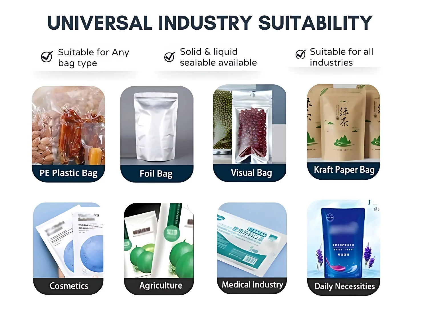 This machine is appropriate for heat-sealing plastic bags that require sealing, but it is unsuitable for M-fold, PE, aluminum foil, and thick bags.