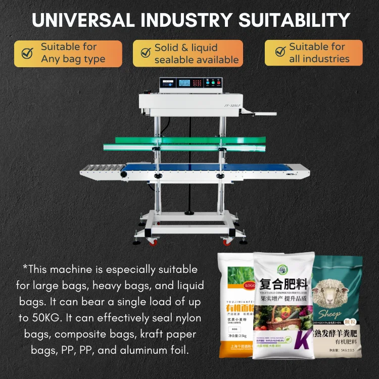 TEPPS 320L vertical continuous sealer for nylon bags is adjustable for sizes. This vertical continuous sealer for nylon bags is reliable for food packaging. The vertical continuous sealer for nylon bags is for plastic.